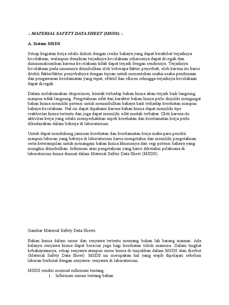 Material Safety Data Sheet Msds Informasi Penting Penggunaan Bahan Kimia Untuk Keselamatan Kerja Di Laboratorium Rohmatchemistry S Blog