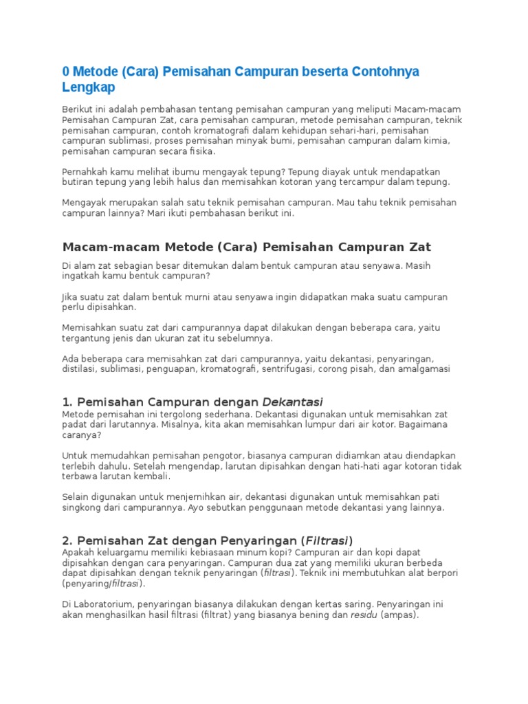 Metode Pemisahan Campuran Pada Kimia Dan Contohnya Ilmupelajaran Com