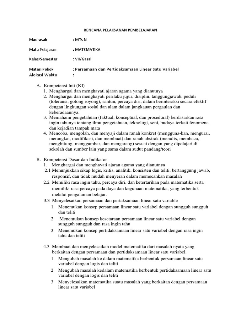 Materi Bab 3 1 3 1 Persamaan Linear Satu Variabel 3 Contoh Soal A B 3 3 Pertidaksamaan Linear Pdf Document