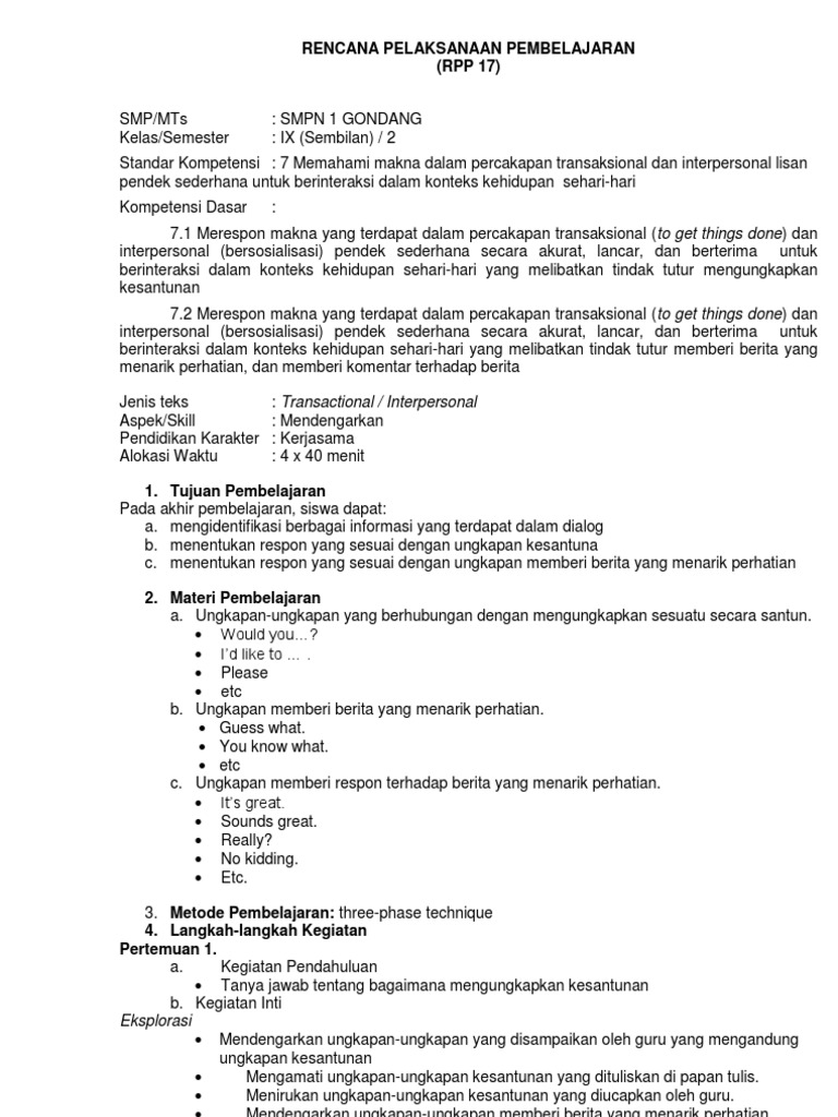 Contoh Rpp Bahasa Inggris Adiwiyata Guru Ilmu Sosial