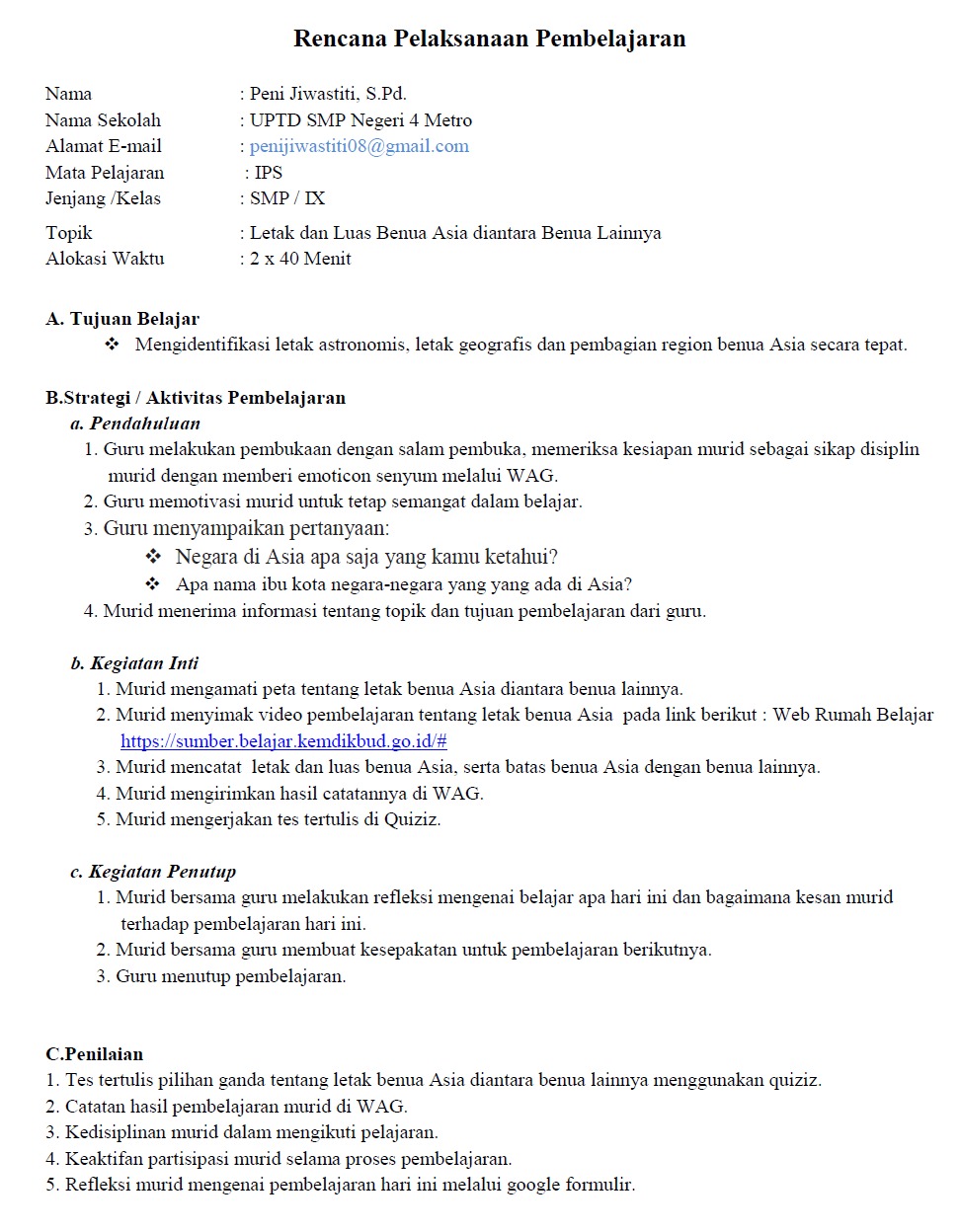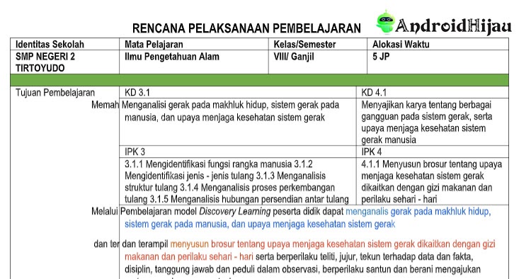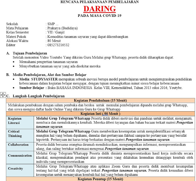 Rpp Daring Ipa Kelas 9 Semester Ganjil Kurikulum 2013 Tahun Pelajaran 2020 2021 Didno76 Com
