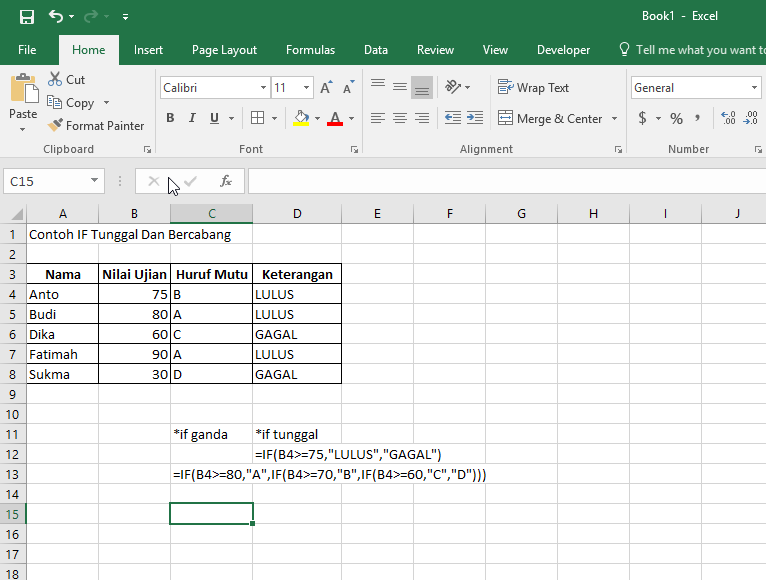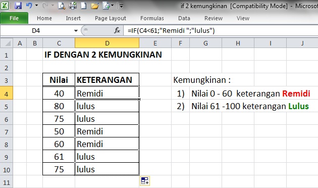 Contoh Menggunakan Fungsi If Sederhana Pada Tabel Kelulusan Siswa Di Excel