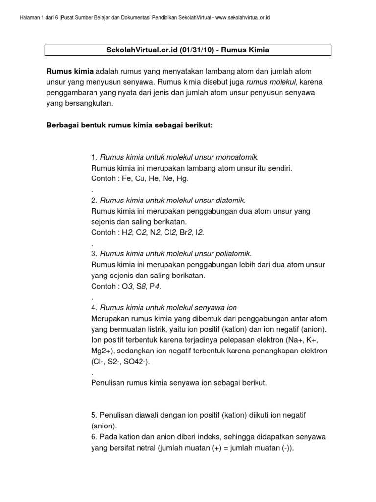 Daftar nama dan rumus senyawa kimia. Molekul terdiri dari sejumlah atom yang bergabung melalui ikatan kimia baik itu ikatan kovalen ikatan hidrogen dan ikatan ion serta ikatan iktan kimia lainnya. Rumus molekul air yaitu h 2 o yang berarti dalam satu molekul air terdapat dua atom hidrogen dan satu atom oksigen.