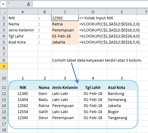 Contoh Rumus Excel Praktis Rumus Vlookup Dinamis Dengan Fungsi Indirect