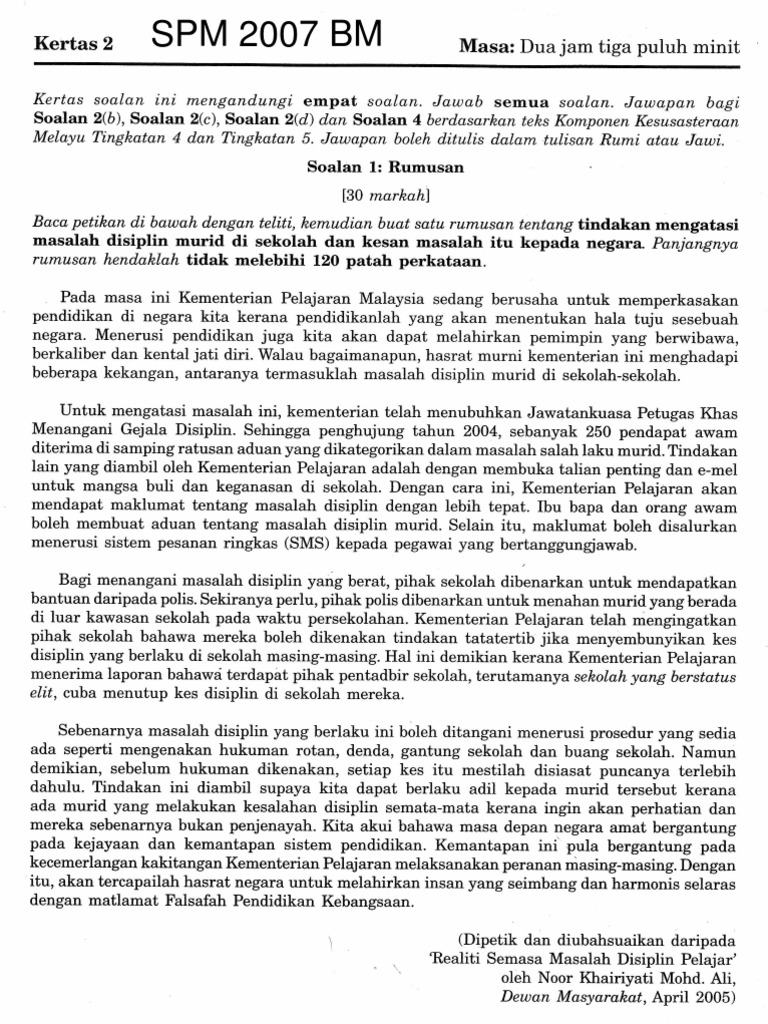 Kertas 2 Soalan Skema Rumusan Percubaan Spm 2019 Se Malaysia Pdf Koleksi Soalan Peperiksaan Percubaan Kertas 2 Bm Spm 2019 Rumusan Set 1 Johor Course Hero