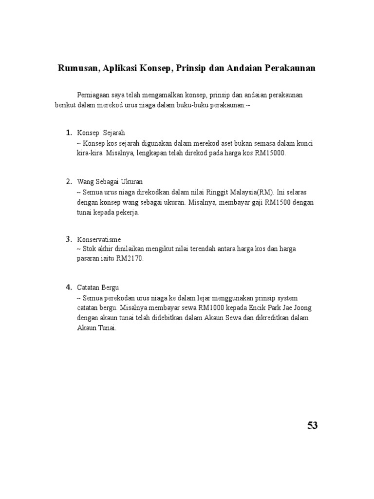 Rumusan Rumusan Perniagaan Saya Telah Mengamalkan Konsep Prinsip Dan Andaian Perakaunan Berikut Dalam Merekod Urus Niaga Dalam Buku Buku Perakaunan Course Hero