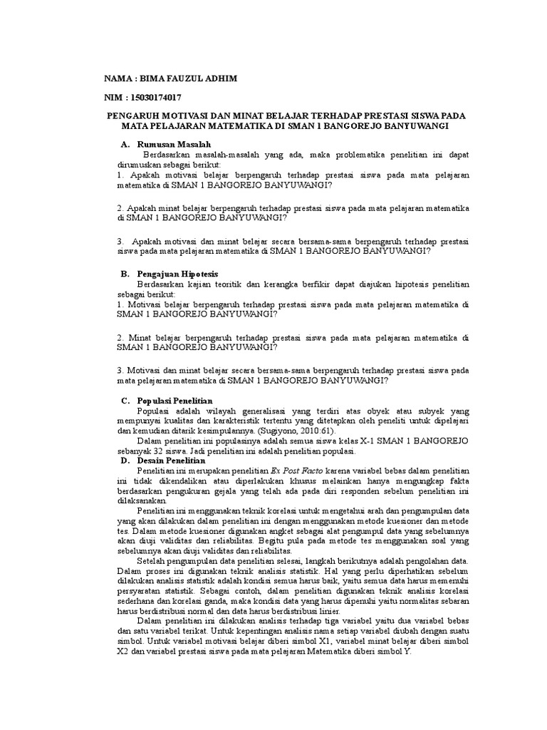 Pdf Contoh Proposal Usulan Penelitian Kuantitatif Judul Eksperimentasi Pembelajaran Matematika Dengan Model Kooperatif Tipe Teams Games Tournaments Tgt Terhadap Hasil Belajar Matematika Ditinjau Dari Motivasi Belajar Matematika Siswa Sekolah Dasar