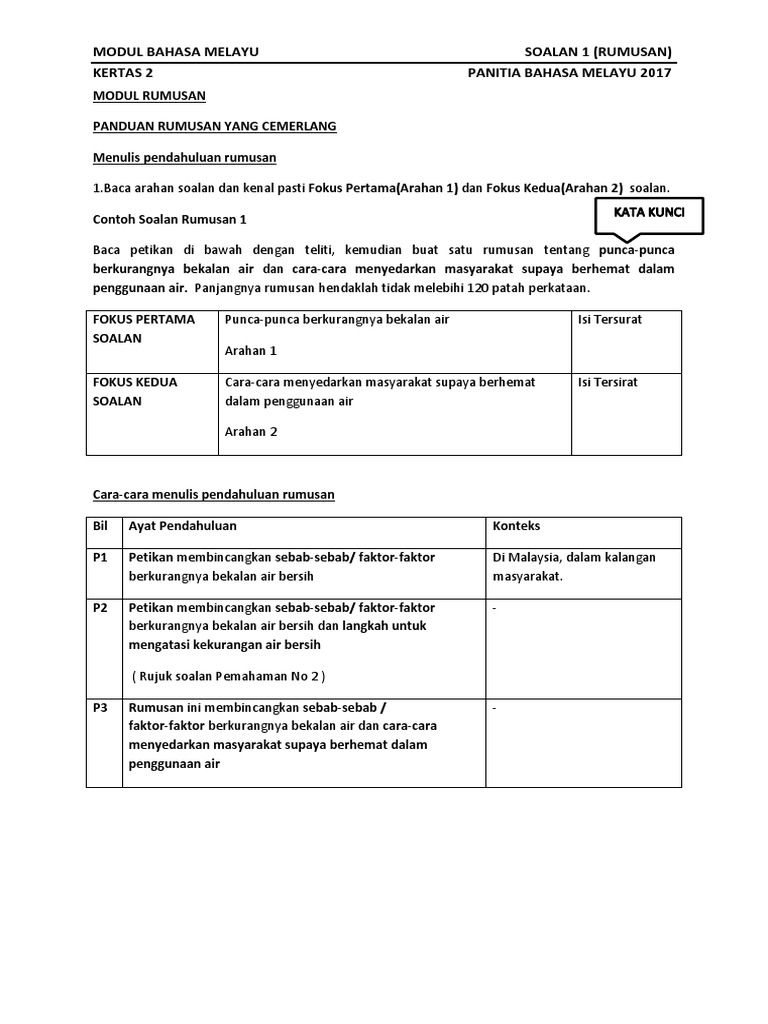 Latihtubi Bahasa Melayu Kertas Dua Rumusan Dan Petikan Umum Ko