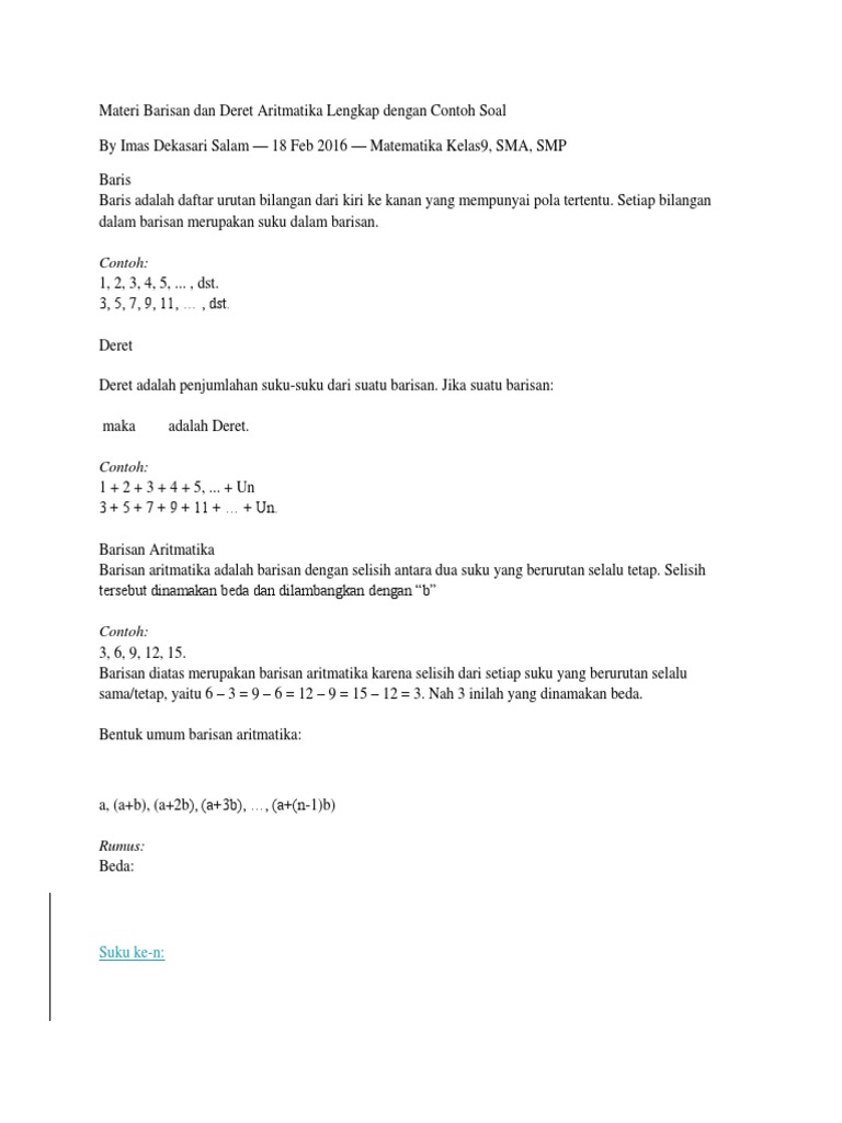 Barisan Dan Deret Aritmatika Geometri Tak Hingga Rumus Contoh Soal