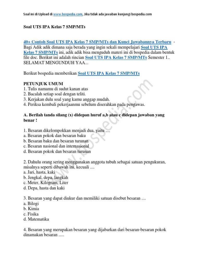 Kumpulan Soal Ipa Kelas 7 Smp Kurikulum 2013 Materi Pengukuran Satuan Baku Dan Besaran Pokok Your Chemistry A