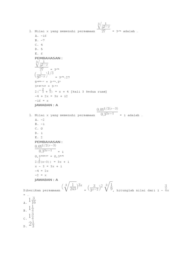 Contoh Soal Eksponen Kelas 10 Dan Pembahasannya Kurikulum 2013 Kumpulan Soal Pelajaran 3