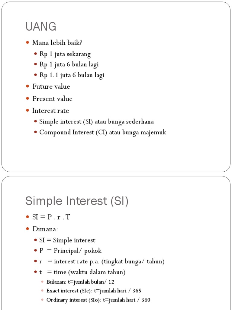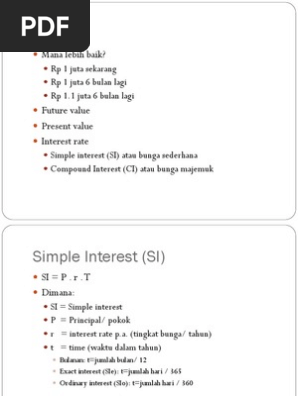 Bunga sederhana matematika keuangan bunga sederhana. Istilah yang sering digunakan adalah bunga berbunga. Anuitas angsuran bunga an an bn.