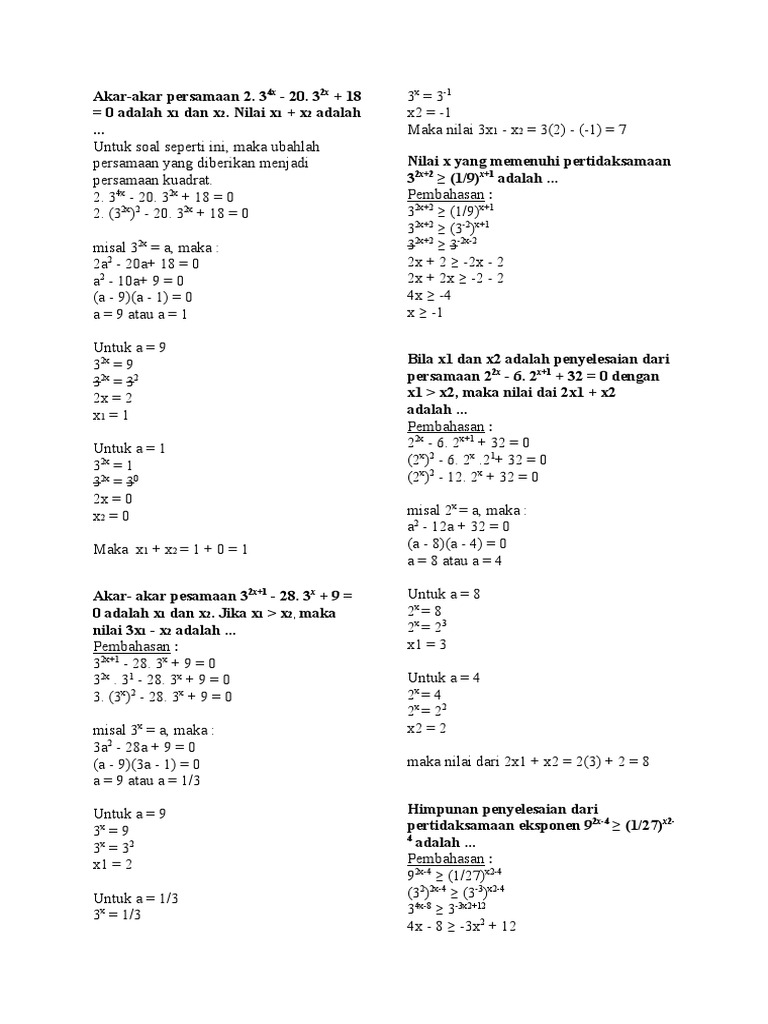 Contoh Soal Pertidaksamaan Eksponen Dan Pembahasannya Kumpulan Soal Pelajaran 1
