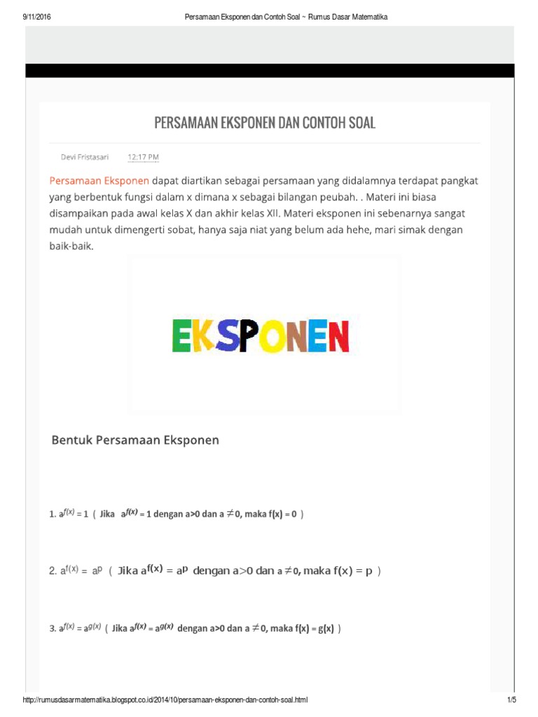 Doc Lembar Kerja Siswa Satuan Pendidikan Sma Negeri 1 Dayeuhkolot Kelas Program X Mia Mata Pelajaran Matematika Materi Fungsi Eksponen Dan Logaritma Nama Anggota Kelompok 1 Nopia Sonjaya Academia Edu