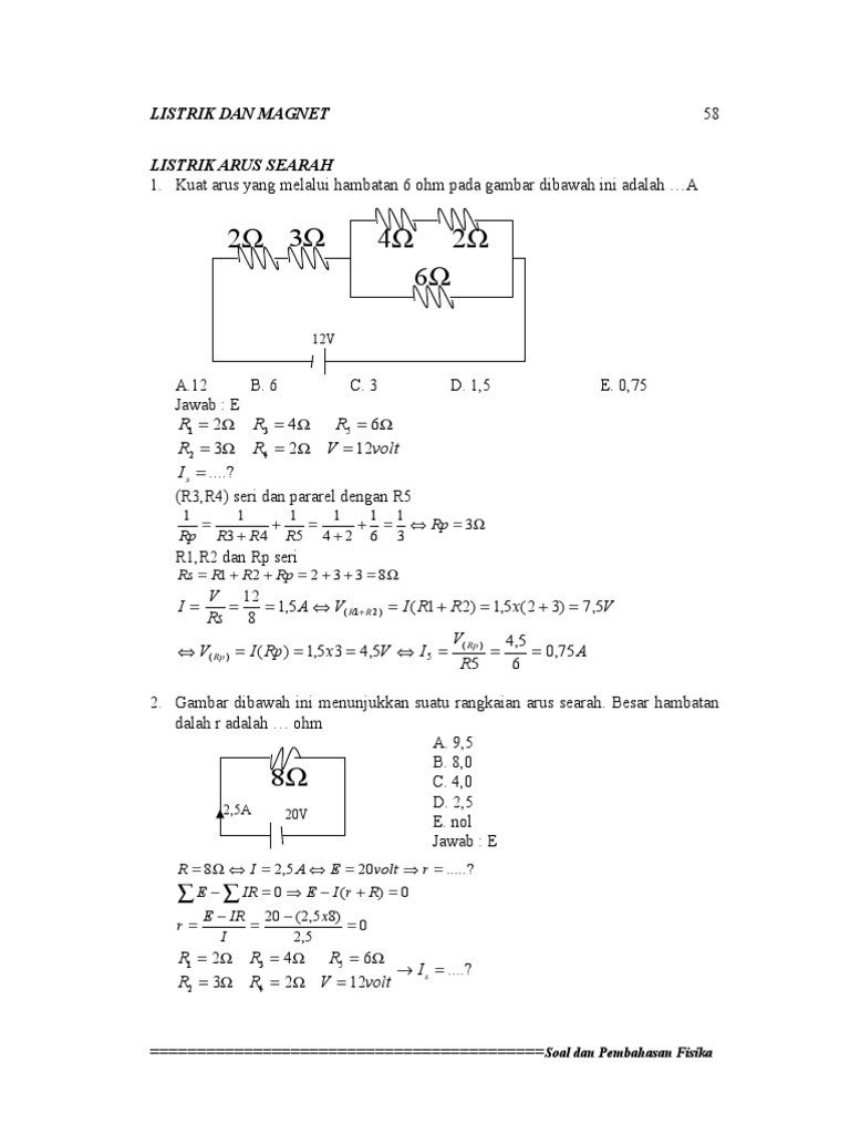 Kumpulan Soal Dan Pembahasan Fisika Listrik Dinamis Listrik Arus Searah Guru Baru Indonesia