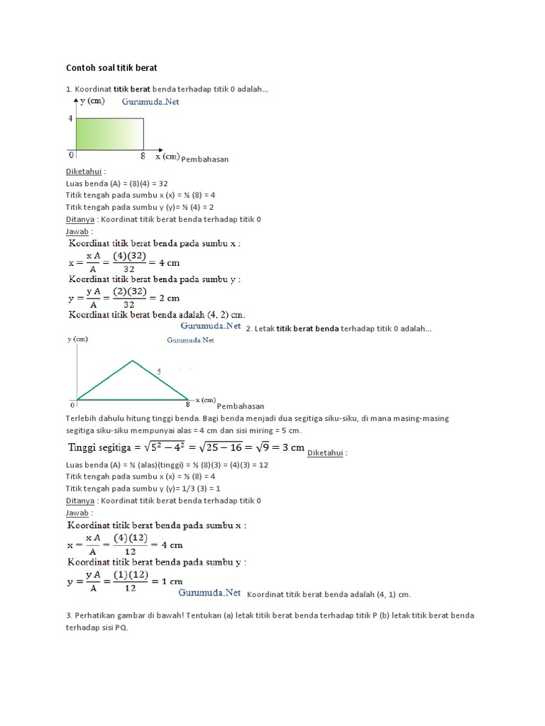Soal Dan Penyelesaian Titik Berat Dan Pusat Massa Contoh Soal Dan Penyelesaian Fisika
