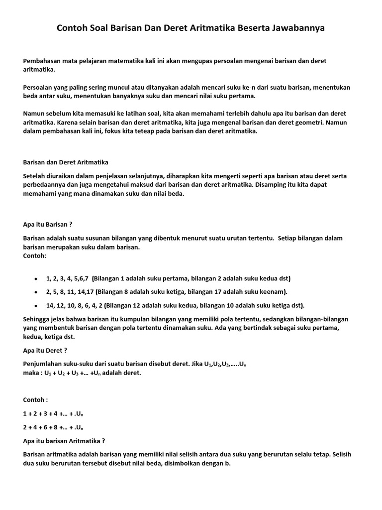 Soal Deret Aritmatika Beserta Jawaban