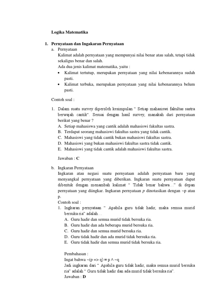 20 Contoh Soal Logika Matematika Pernyataan Majemuk
