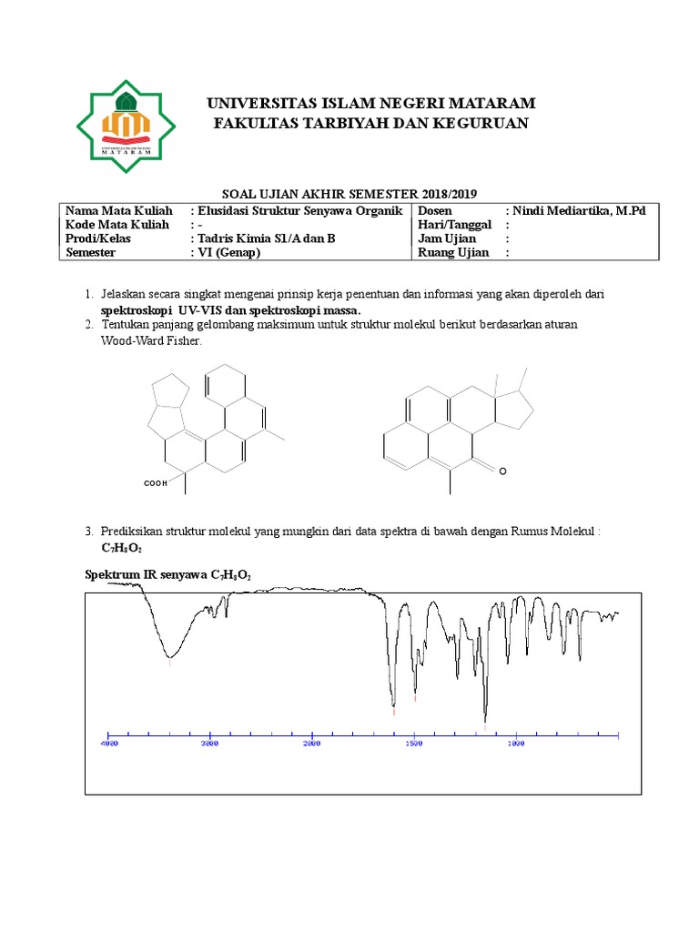 Soal dan jawaban penentuan struktur senyawa organik ir nmr ms ini ada juga soal lain tapi tanpa jawabannya. Sifat asam karboksilat yaitu 3. Laporan praktikum analisis instrumen elusidasi struktur senyawa organik berdasarkan metode spektskopi massa ir hnmr dan cnmr.