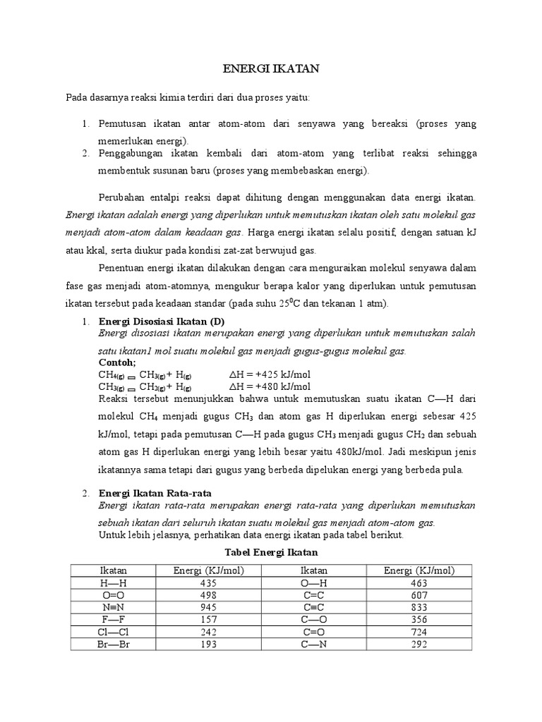 Termodinamika Pertemuan 3 Contoh Soal Jawab Dh De Pdv Jika Energi Ikatan Energi Ikatan Disosiasi D Adalah Energi Yang Dibutuhkan Untuk Memecahkan Ikatan Sehingga Dihasilkan Pdf Document