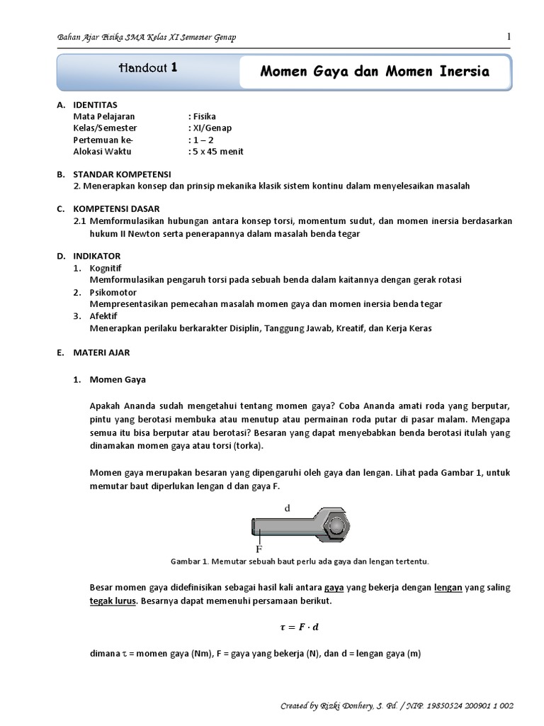 Contoh Soal Hubungan Momen Inersia Dan Momen Gaya Torsi Les Online Fisika