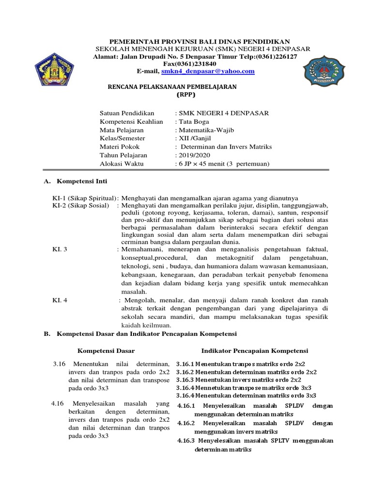 02 Invers Perkalian Matriks Ordo 3x3 A B Invers Perkalian Matriks Ordo 3x 3 Kelas Xii Semester 5 M A T R I K S 3 Peta Konsep 3 Menentukan Determinan Matriks 4 Menentukan Pdf Document