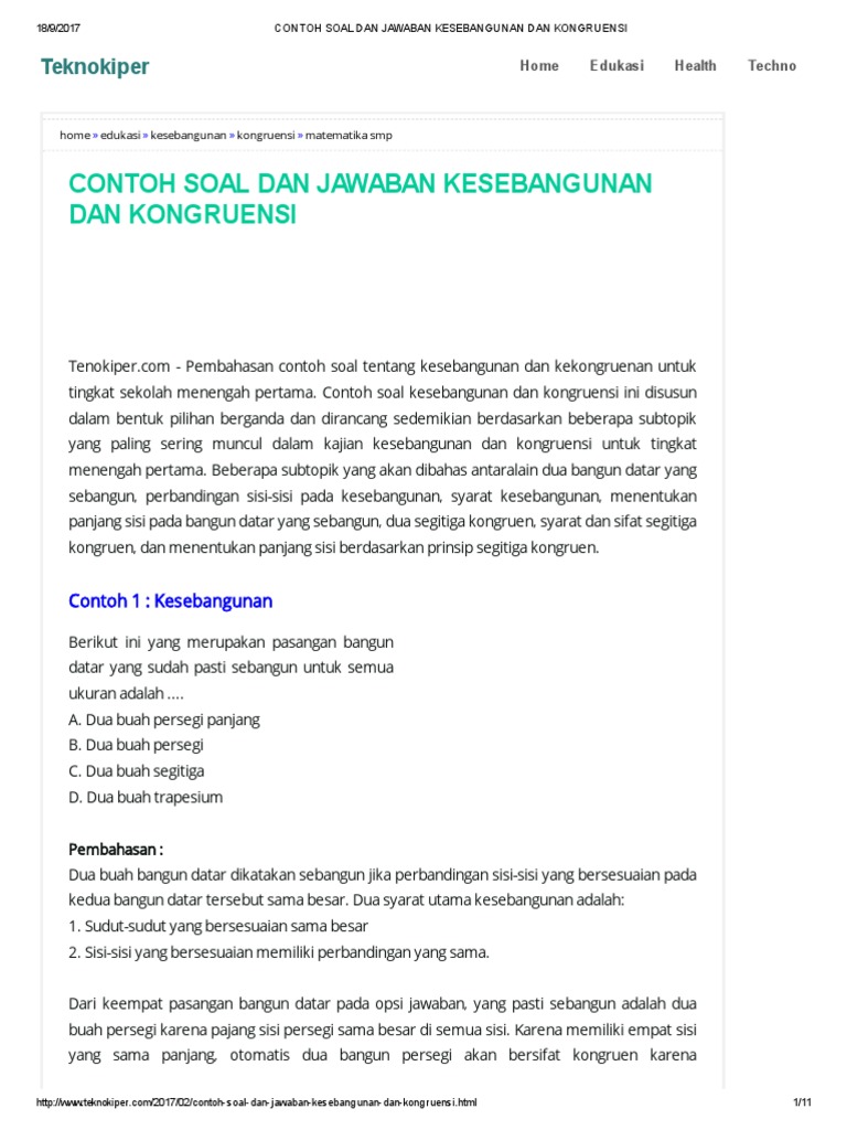 10 Soal Dan Pembahasan Kesebangunan Dan Kekongruenan Bangun Datar Pendidikan Matematika Laman 5