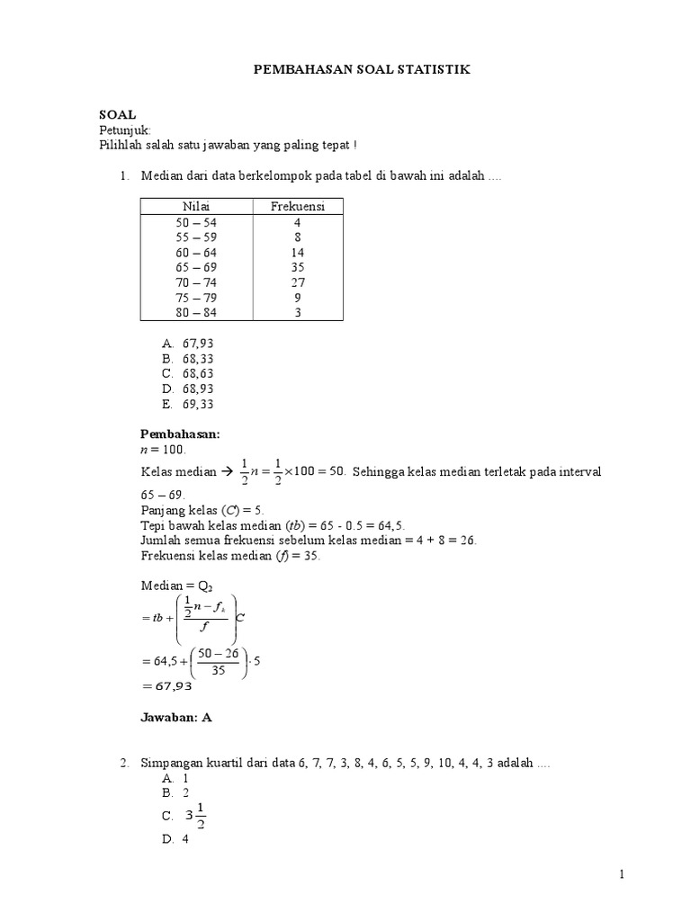 Pelajaran Soal Rumus Kuartil Data Berkelompok Wardaya College