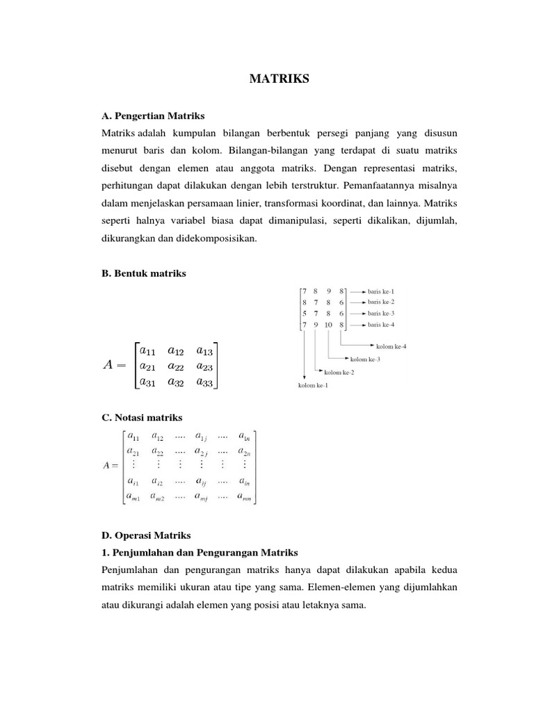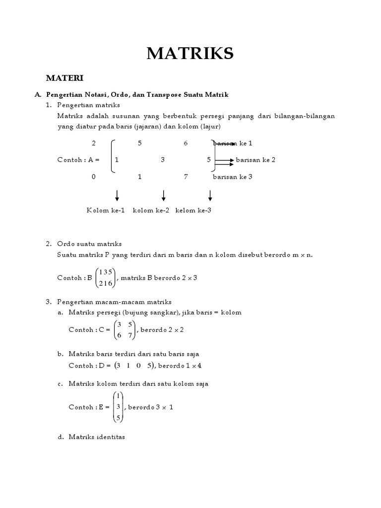 Pengertian Matriks Dan Jenis Jenis Matriks Terlengkap