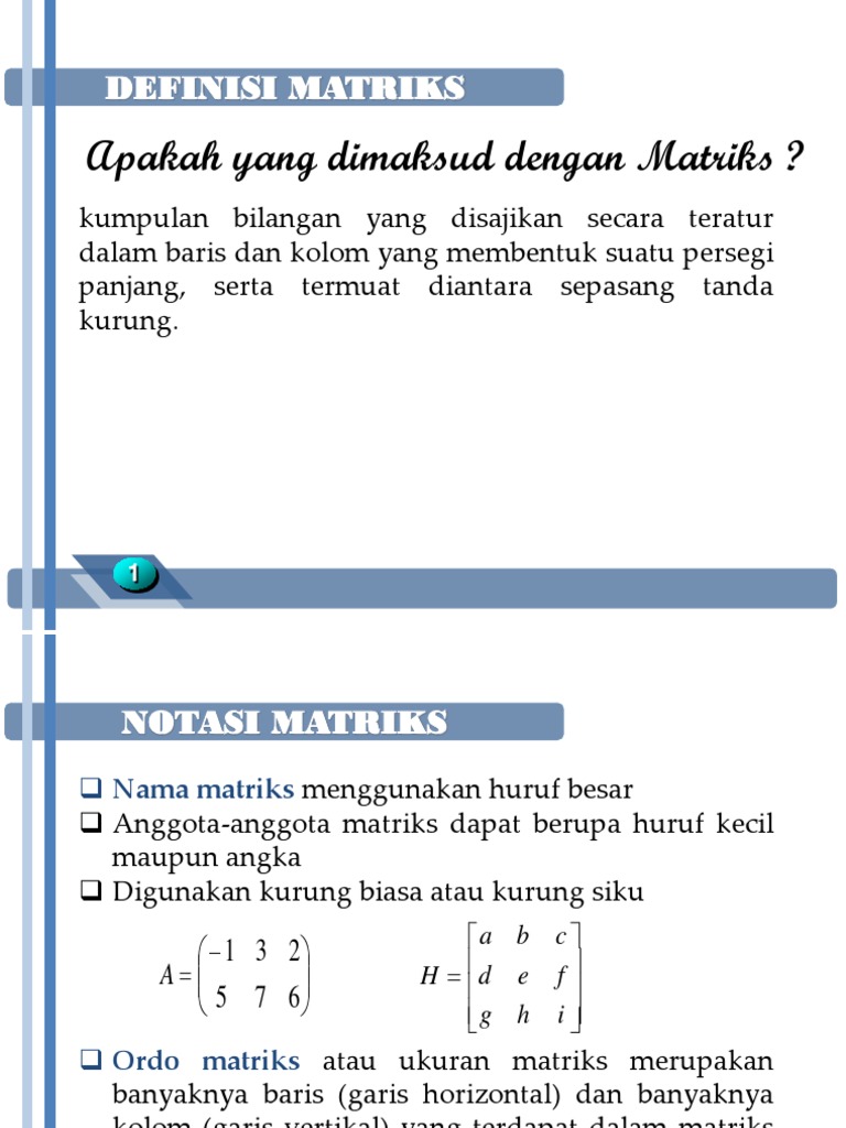Matriks Definisi Matriks Adalah Kelompok Bilangan Yang Disusun Dalam Suatu Jajaran Berbentuk Persegi Atau Persegi Panjang Yang Terdiri Dari Baris Dan Kolom Ppt Download
