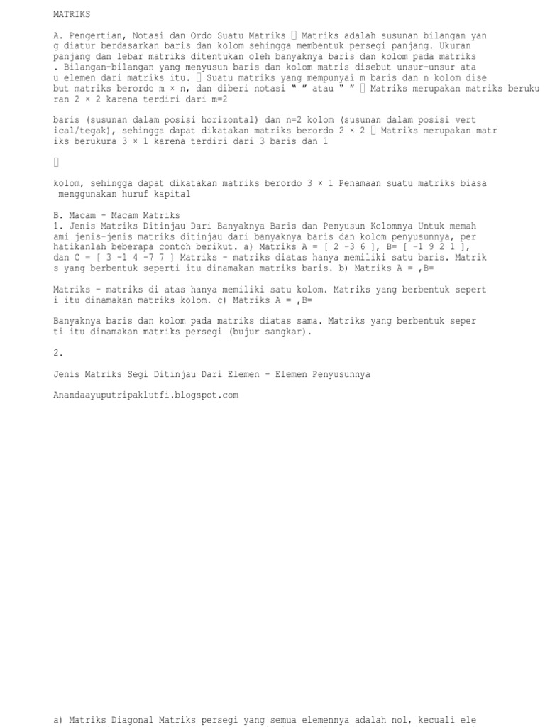 Pengertian Matriks Dan Jenis Jenis Matriks Terlengkap