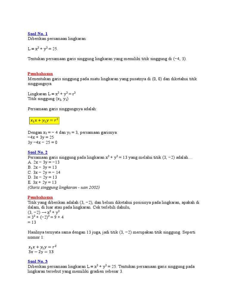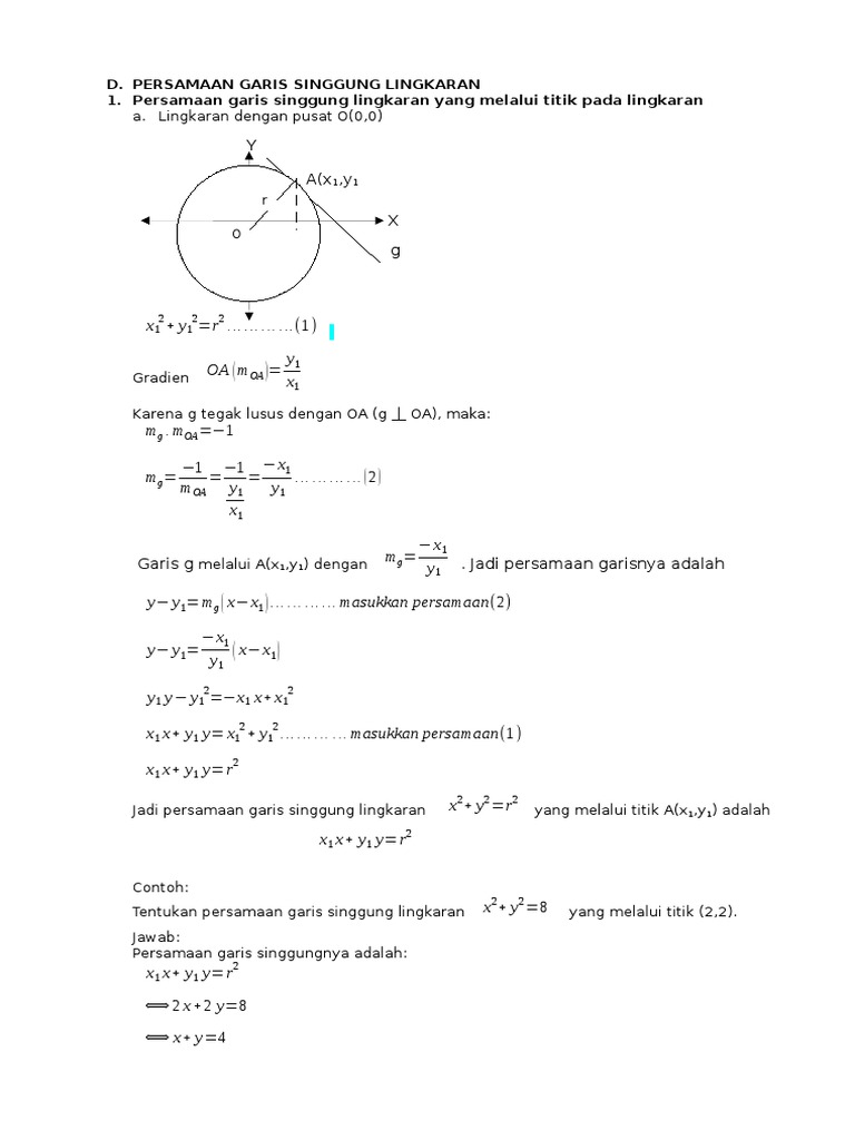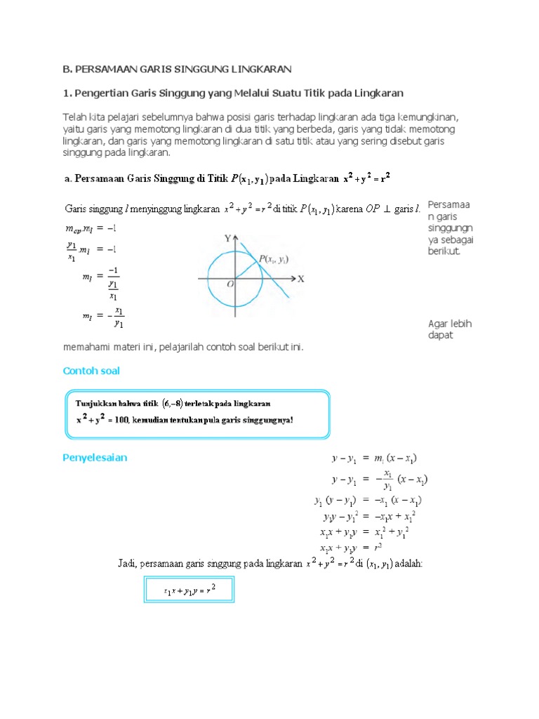 Persamaan Garis Singgung Lingkaran Melalui Titik Di Luar Lingkaran Pdf Download Gratis