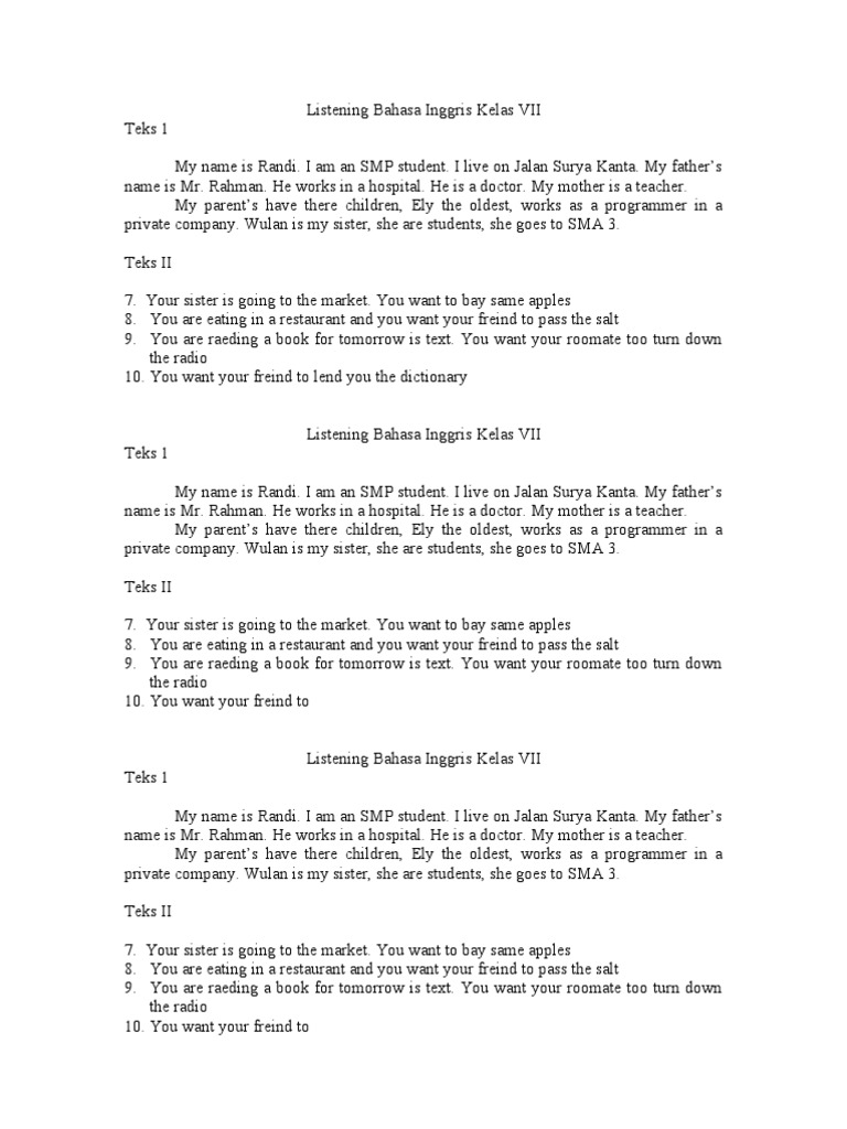 Contoh Soal Ulangan Tengah Semester 2 Bahasa Inggris Smp Kelas 7 Belajar Bahasa Inggris