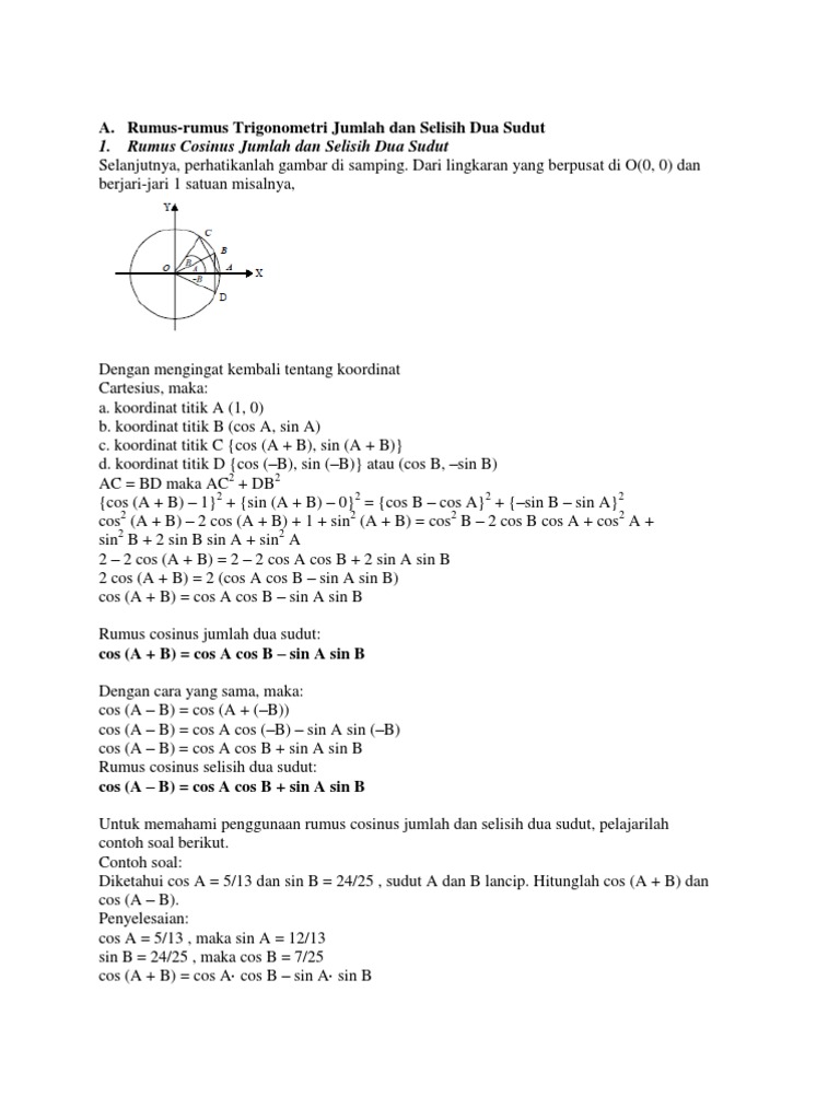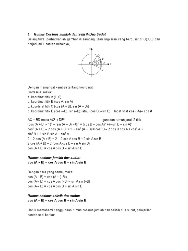 Cosinus Jumlah Dan Selisih Dua Sudut Pendidikan Matematika
