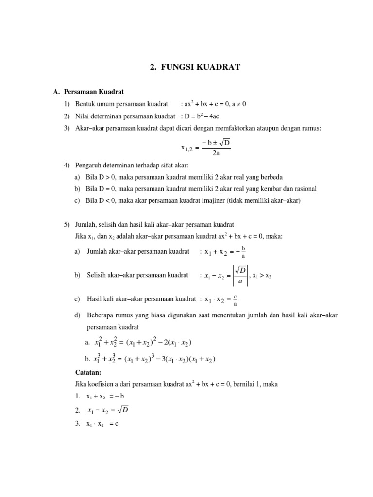 W03 Rumus Jumlah Dan Hasil Kali Akar Akar Pers Kuadrat 1 Soallatihan Persamaan Dan Fungsi Kuadrat Kelas X Semester 1 C Rumus Jumlah Dan Hasil Kali Akar Akar Persamaan Kuadrat Materi Pdf Document