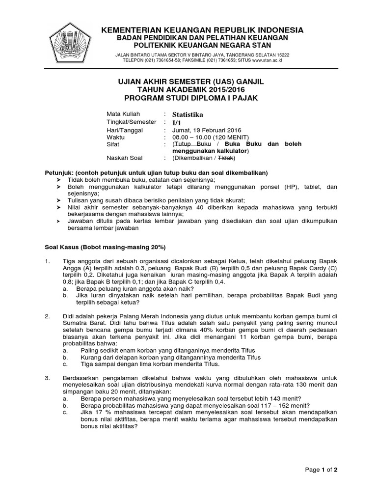 Program Studi Teknik Elektro Universitas Kristen Antara Probabilitas Probability Dan Statistika Statistics Sertai Dengan Contoh B Pandangan 2 Jenis Statistikawan Statistician Pdf Document