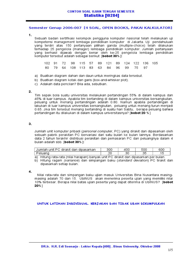 Ilmu Pengetahuan 1 Contoh Soal Statistika Kuliah