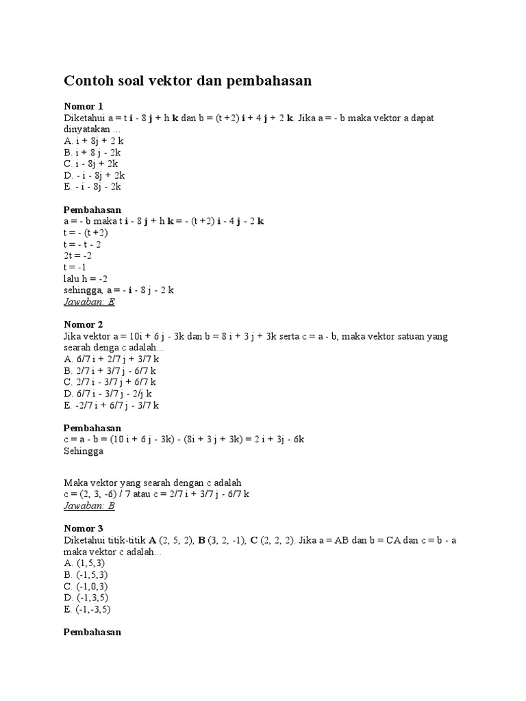 Contoh Soal Vektor Dan Pembahasannya Beserta Jawabannya
