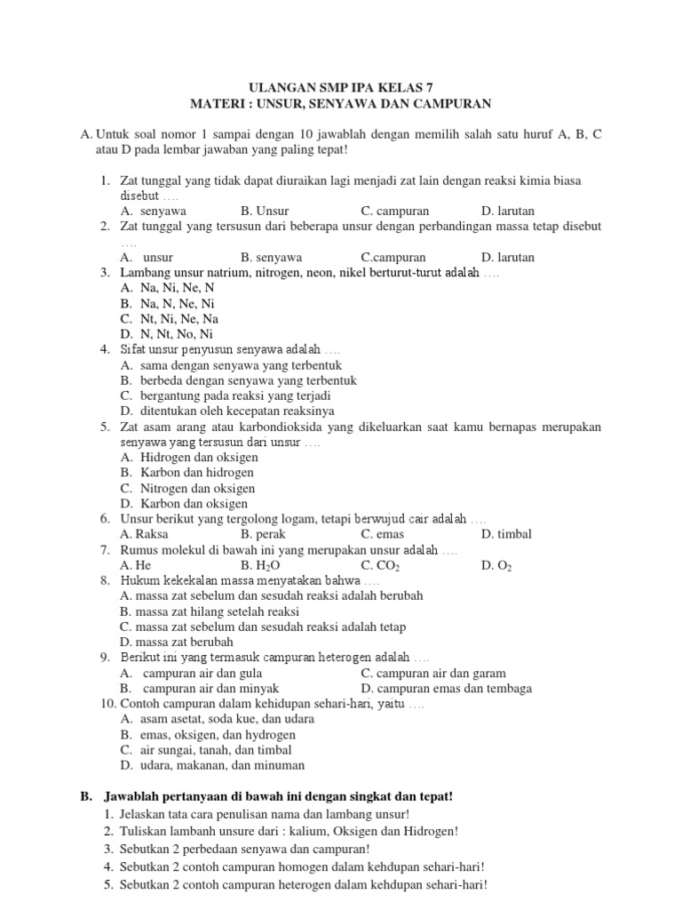 Pengertian Unsur Senyawa Dan Campuran Serta Contohnya Masing Masing 3 Contoh Brainly Co Id
