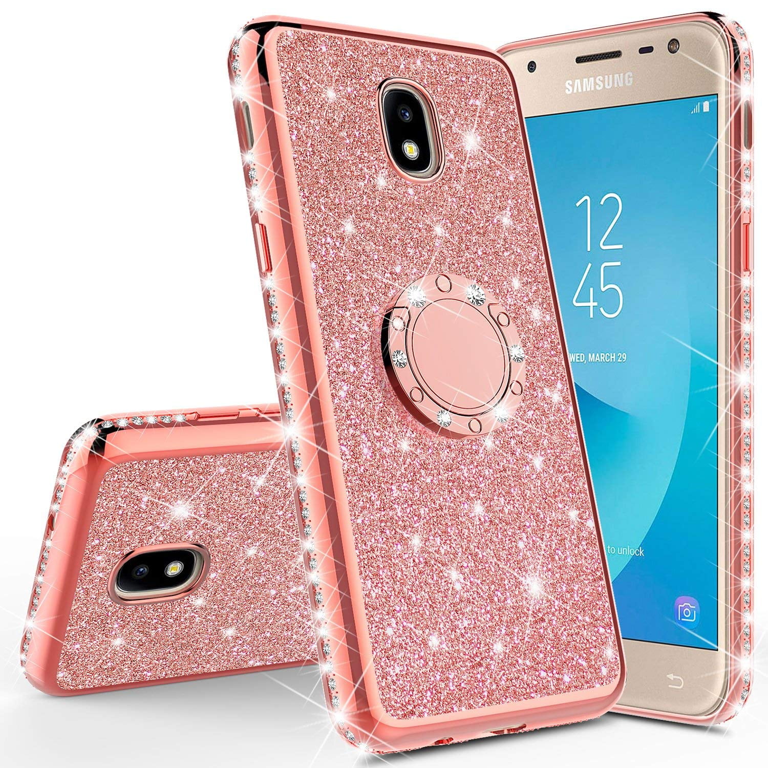 Cute Girls Women Glitter Phone Case For Samsung Galaxy J3 2018 J3 Star J3 Achieve Express Prime 3 Case Kickstand Bling Diamond Rhinestone Bumper Ring Stand Thin Soft Clear Sparkly Rose Gold Walmart Com