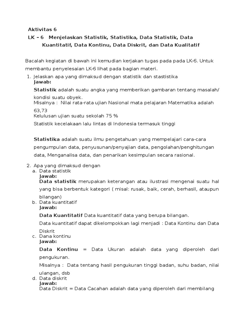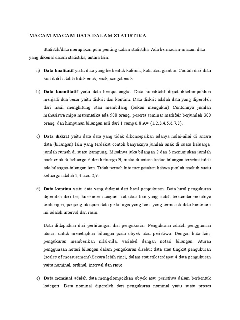 Kuantitatif Skala Data Kualitatif Diskrit Kontinu Skala Data Data Kualitatif A Nominal Tidak Mengenal Pdf Document