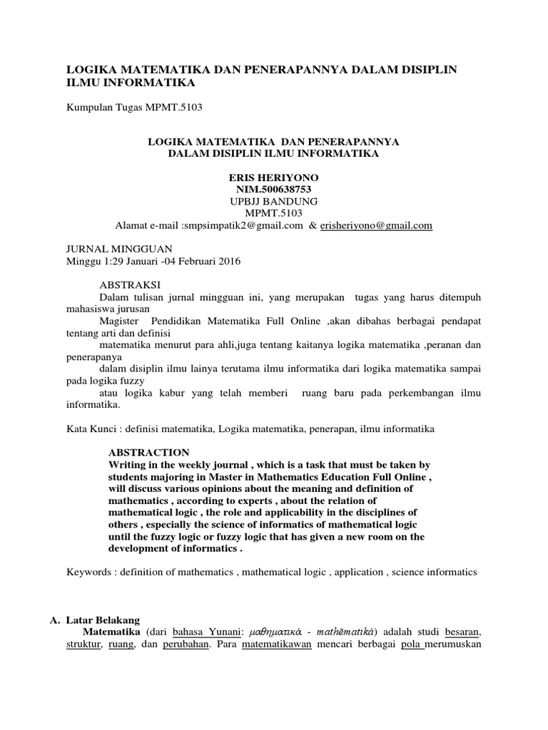 Pdf Efek Alat Peraga Pipa Logika Matematika Untuk Mengajarkan Logika Matematika Di Sma Swasta Eria Medan