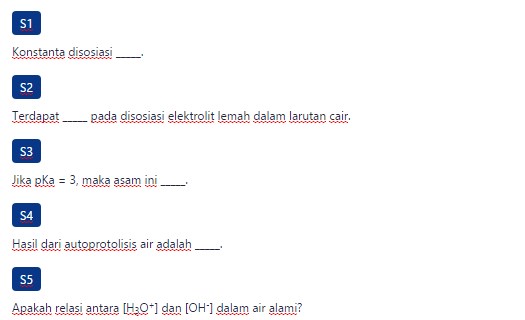Derajat disosiasi elektrolit lemah. Golongan elektrolit lemah adalah zat yang memiliki derajat disosiasi antara 0 a 1 dan apabila dilarutkan dalam air hanya terurai sebagian. Disosiasi elektrolit adalah reaksi ketika suatu elektrolit terpecah terdisosiasi menjadi ion ion pembentuknya. Kb tetapakn disosiasi basa.
