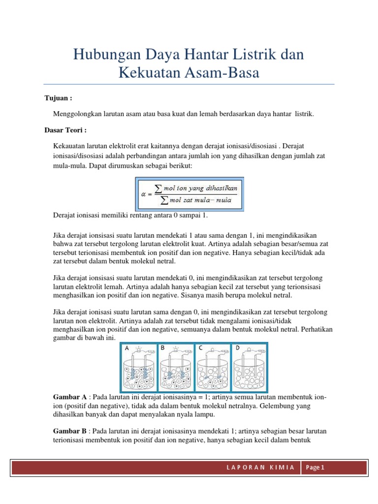 C konsentrasi basa. Fraksi dari jumlah total molekul yang ada dalam larutan sebagai ion dikenal sebagai tingkat ionisasi atau derajat disosiasi. Asal sobat tahu untuk menentukan kuat tidaknya suatu larutan tergantung dari kemampuan ionisasi dari senyawa elektrolit yang diilarutkan dalam pelarut.