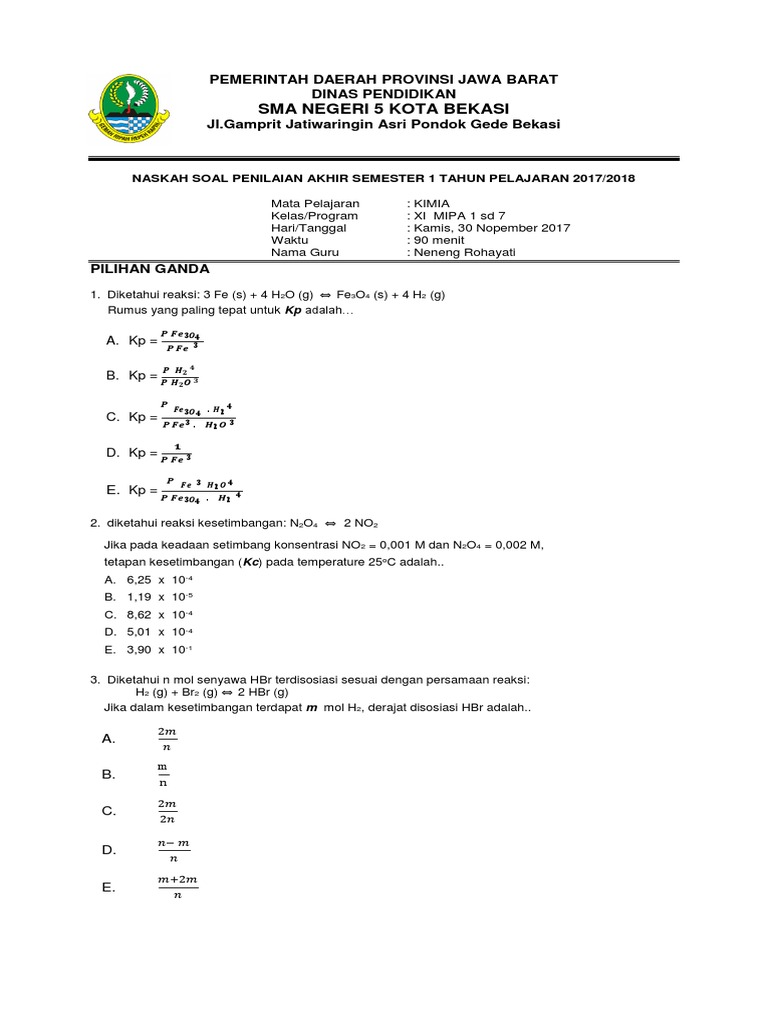 Kimia Dasar Reaksi Kesetimbangan Dengan Tetapan Kesetimbangan Dan Derajat Disosiasi Ppt Download