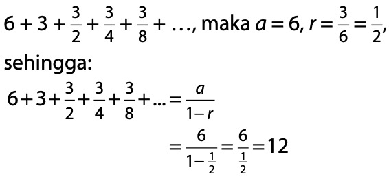 Soal soal ini dikumpulkan dari berbagai sumber termasuk soal un maupun sbmptn. Langsung saja simak pembahasan berikut. Deret geometri tak hingga divergen memiliki rasio r 1 atau r 1 tidak memiliki limit jumlah atau tidak diketahui berapa jumlah pastinya dan sering dikatakan jumlahnya tak hingga infty dari penjelasan di atas sekarang akan dilanjutkan dengan bahasan mengenai rumus deret geometri tak hingga konvergen.
