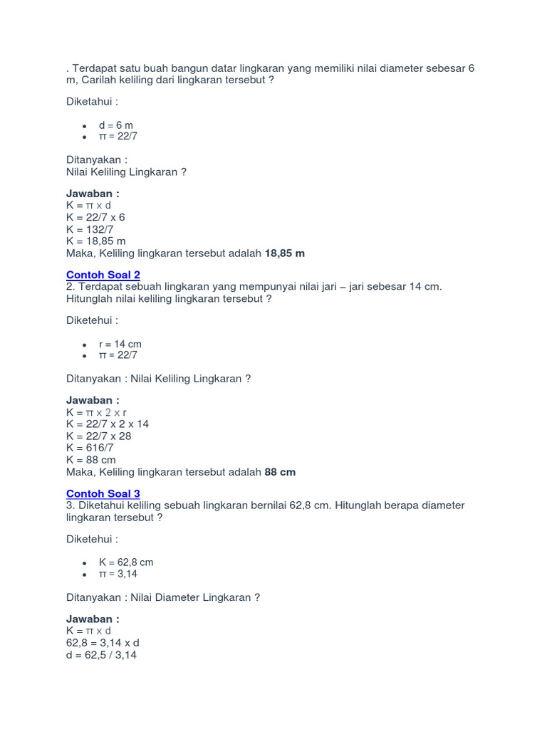 Rumus Keliling Lingkaran Dan Contoh Soalnya Kumpulan Rumus