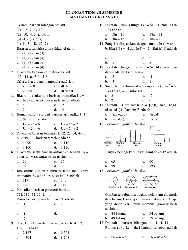 I Pilihlah Salah Satu Jawaban Yang Paling Tepat Dengan Memberi Tanda Silang Pada Huruf A B C Atau D Pada Lembar Jawaban Yang Disediakan