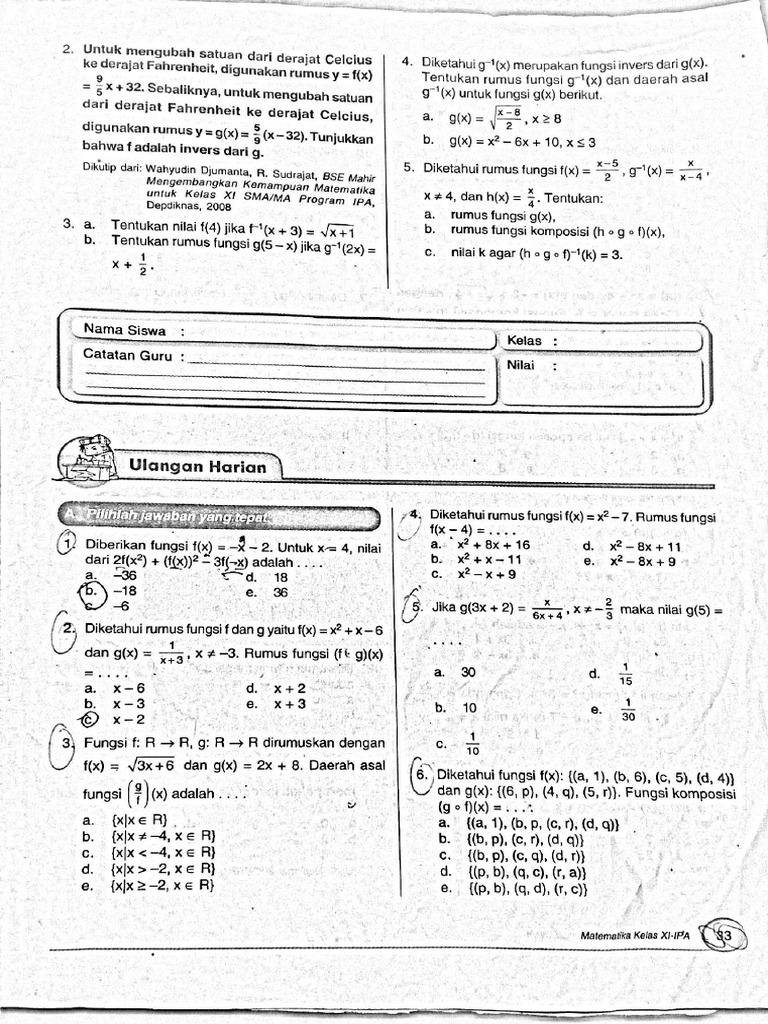 Pdf 3 Soal Soal Fungsi Komposisi Dan Fungsi Invers Eka Wulansari Academia Edu