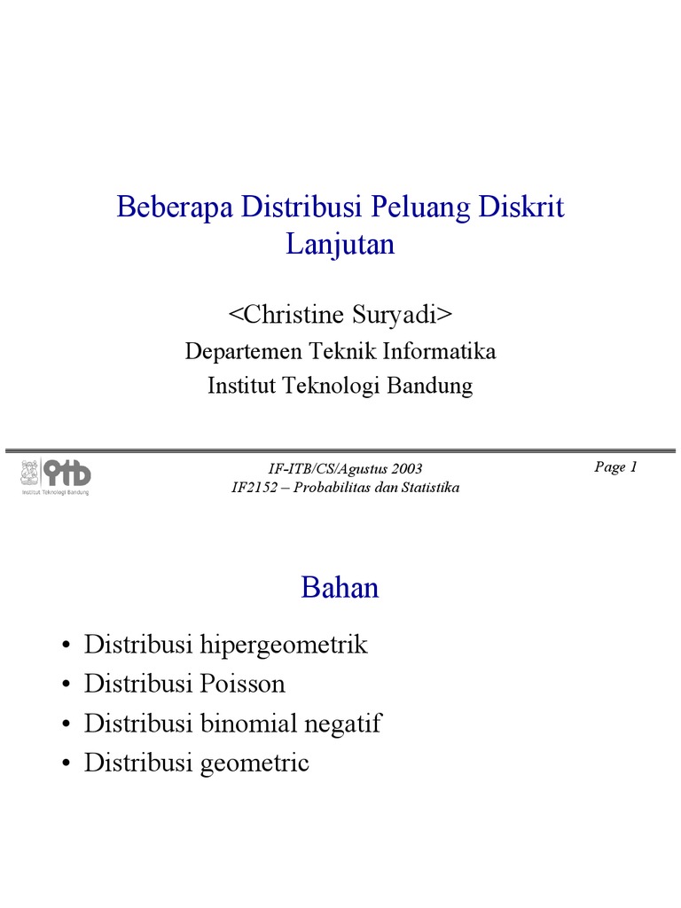 Distribusi Peluang Diskrit Dan Kontinu My Blog
